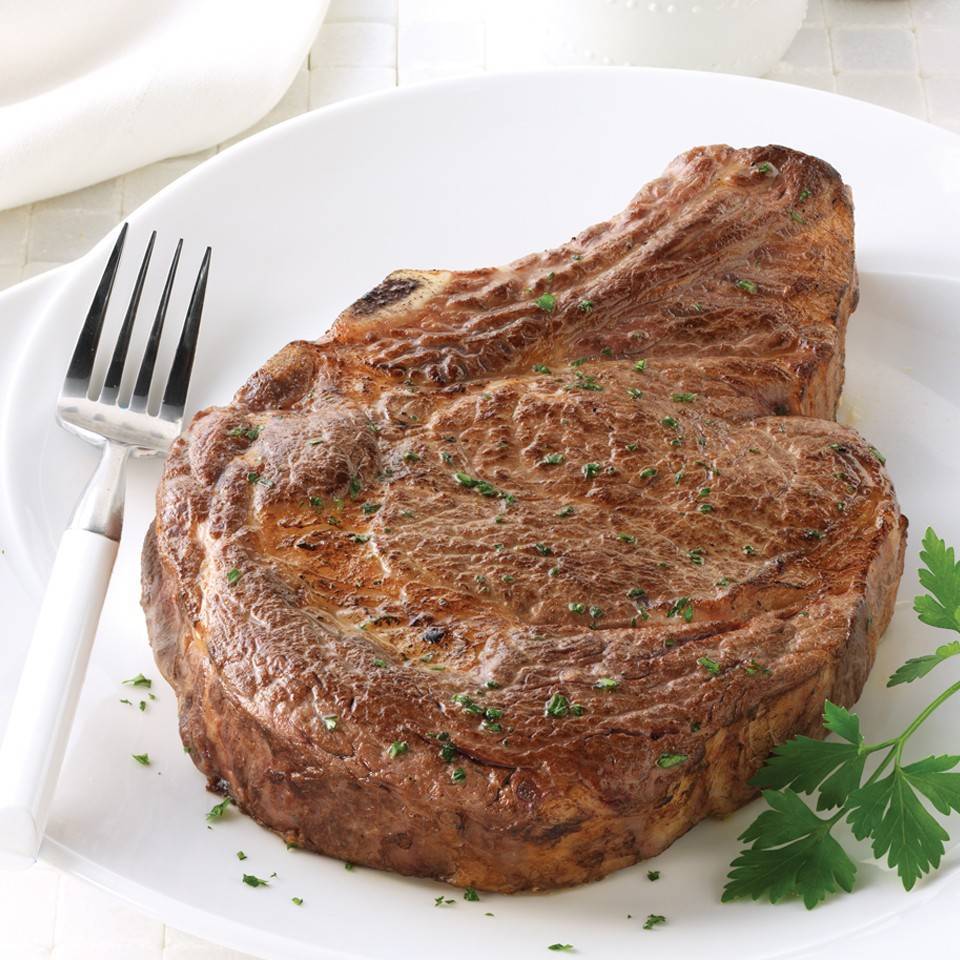 большие куски мяса (отбивная, стейк и т. п.) разрезают от края к середине или к кости.