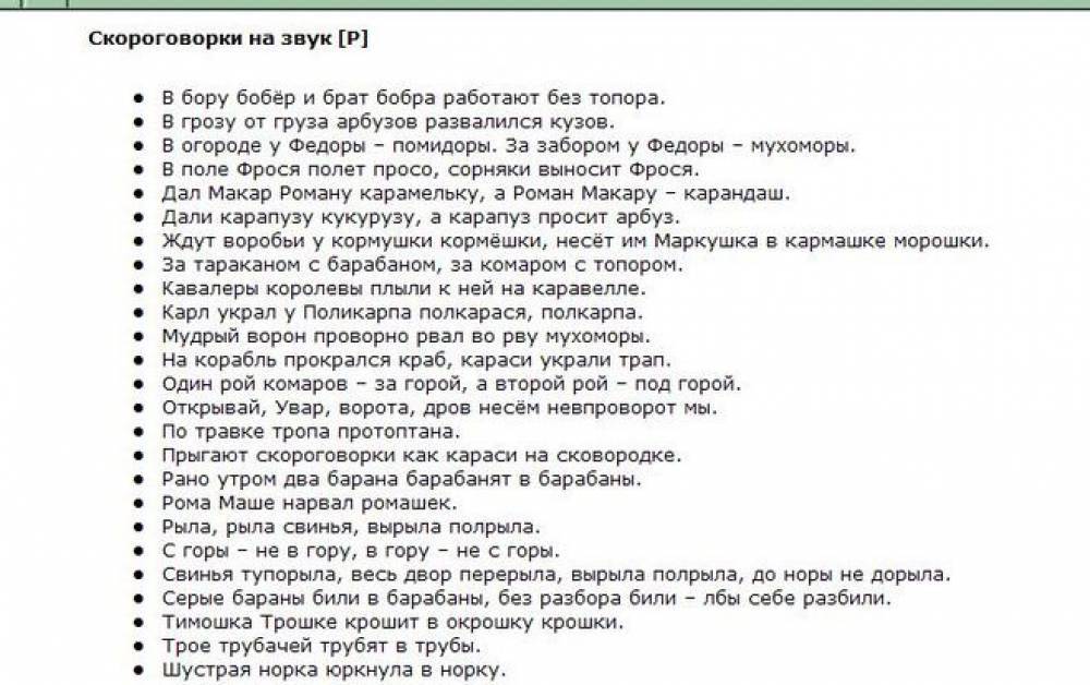 Скороговорки на звук Р