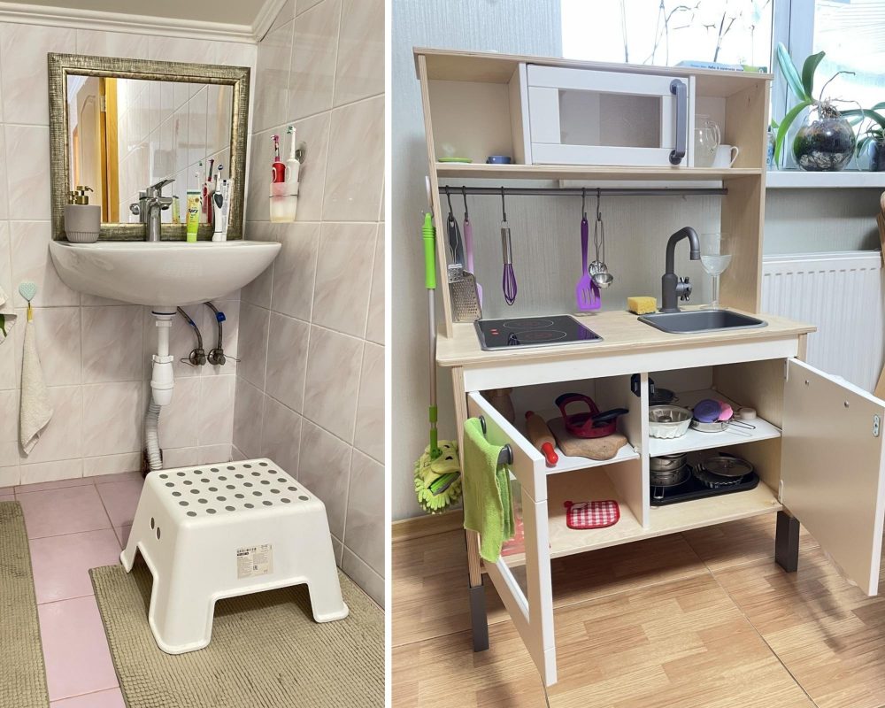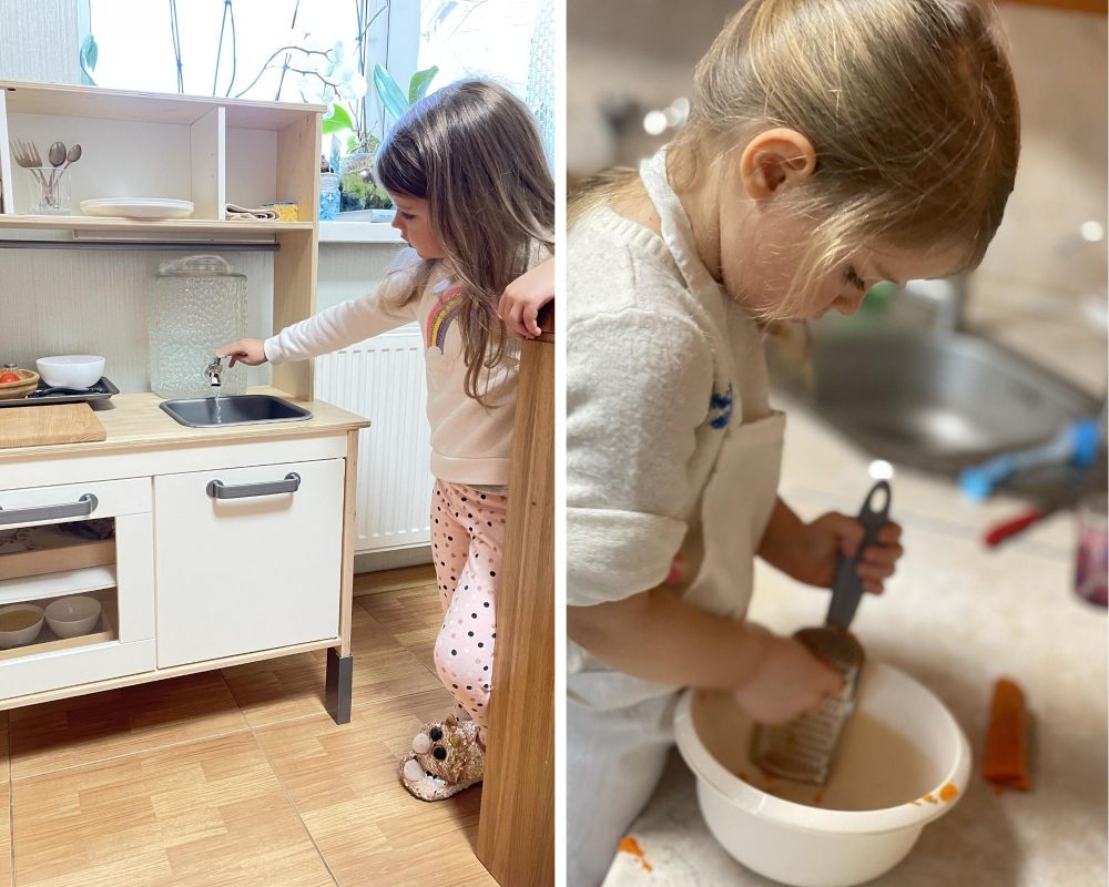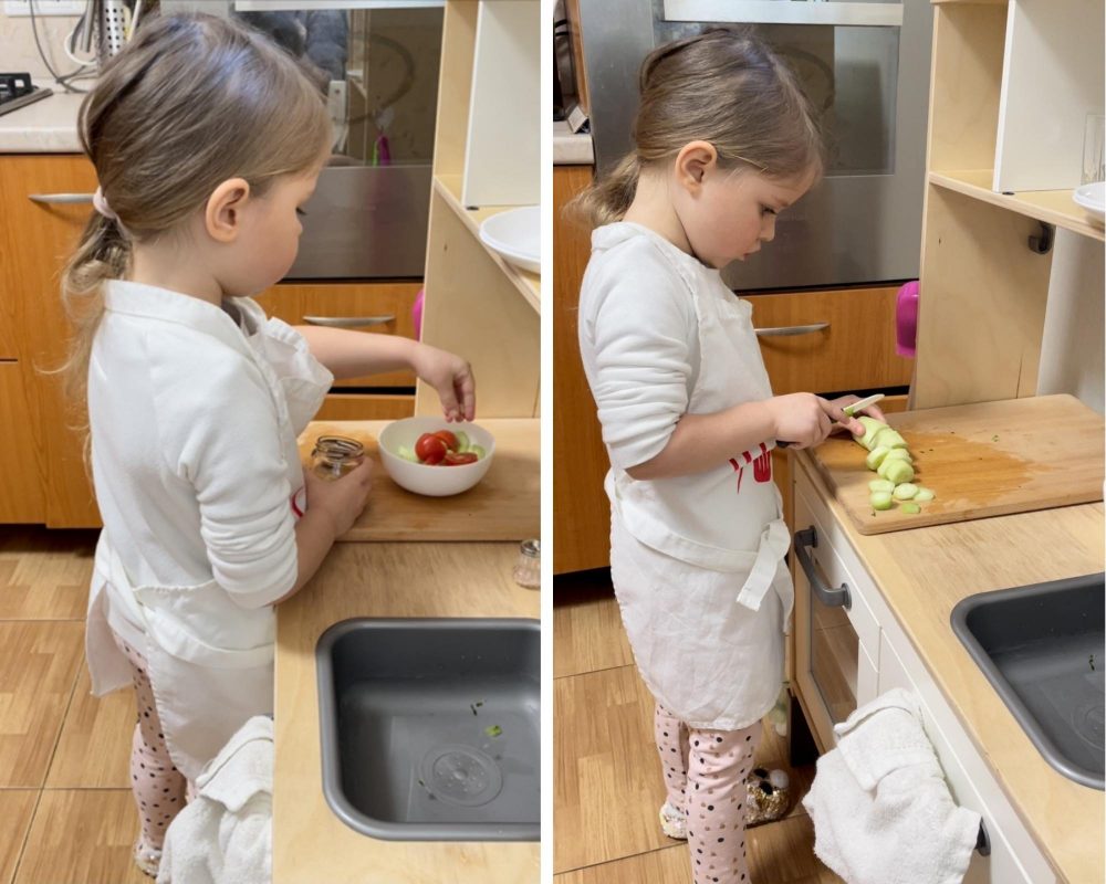 Когда переделали кухню, Мануэла стала больше работать за ней, теперь она чувствует что это её личное пространство и следит за чистотой. Теперь ей легко готовить самой. Как бонус — во время этого занятия развивается мелкая моторика.