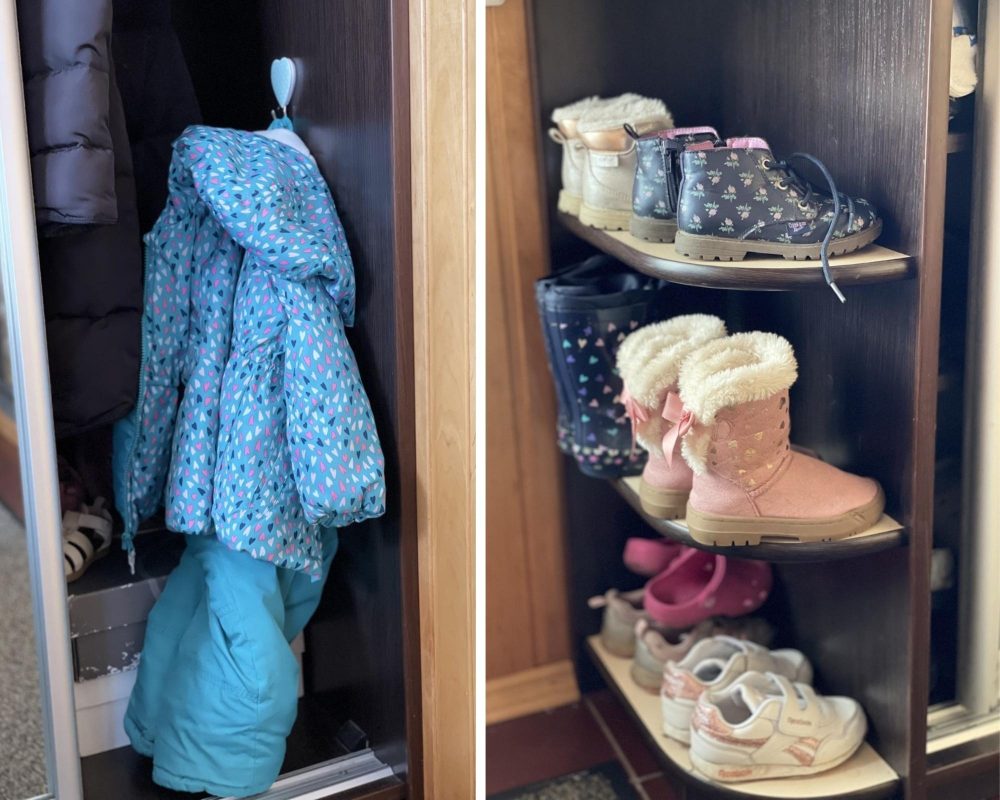 Прихожую мы обустроили так, чтобы Мануэле было удобно самой доставать и надевать свои вещи: