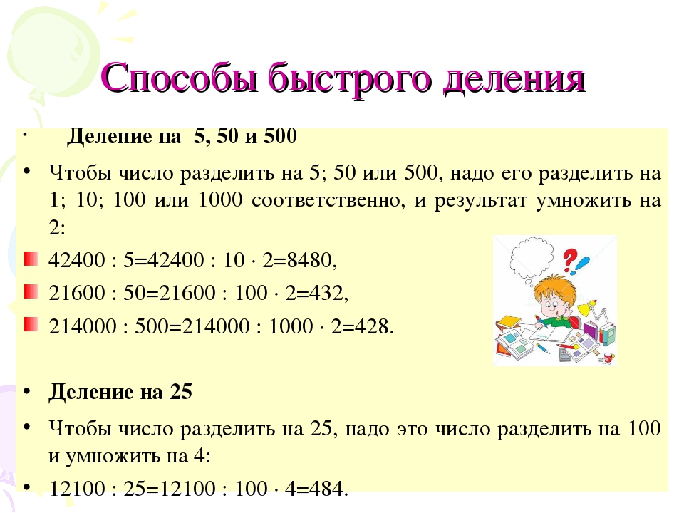 Применяют правило – умножают число на 2 и перемещают запятую на одну цифру назад. Например, 145/5 = 145*2 = 290, смещение запятой назад дает в итоге 29.