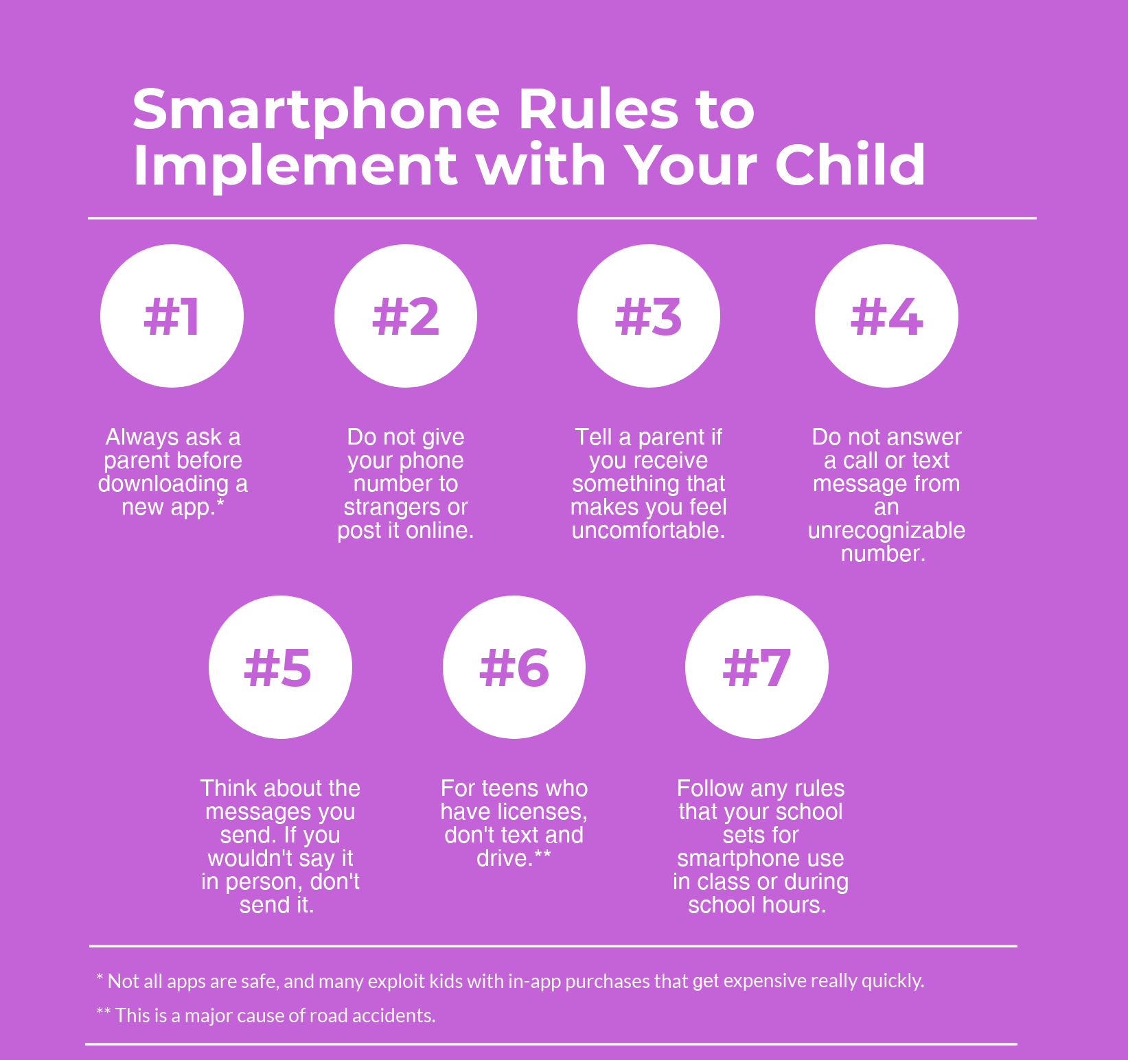 Установите правила использования смартфона вашим ребенком. Если ваши дети будут привлекать вас к использованию ими телефона, это поможет обеспечить их безопасность.