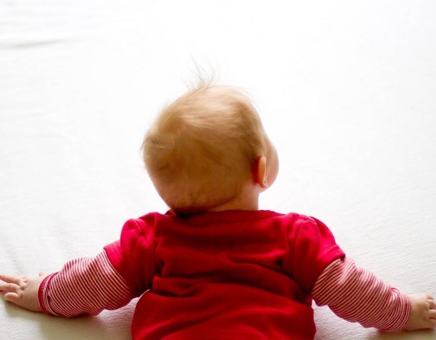 - ребенок может удерживать поднятыми голову и плечи дольше пары минут (например, когда опирается в положении лежа на животе на вытянутые руки);