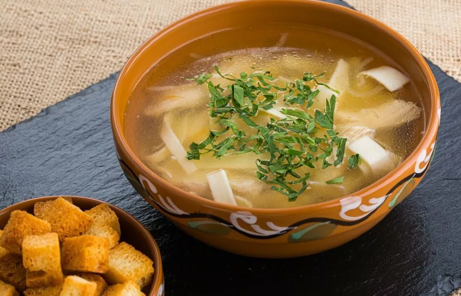 Если в чашке с одной ручкой есть кусочки мяса, овощей, или яйцо, то в начале их съедают ложкой, а потом уже выпивают бульон.