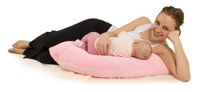 При использовании позы кормления лежа на боку, желательно под спину подкладывать специальный валик, а между ног зажимать плотную диванную подушку.