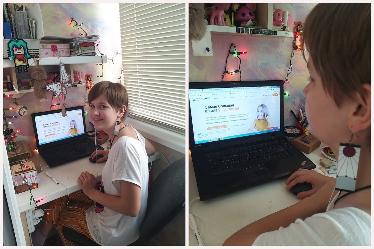 Сейчас дочь учится в своей домашней школе, в 6-м классе. В день у нее по 1–3 урока. Урок по каждому предмету проходит один раз в неделю, но, несмотря на это, свободного времени больше не стало. Уроки начинаются в 12:00 по московскому времени; в Красноярске в этот момент 16:00. На записанном видеоуроке за 15–20 минут преподаватель объясняет тему. Урок можно посмотреть и переслушать когда угодно. Педсостав сильный; например, историю преподает профессор Санкт-Петербургского университета.