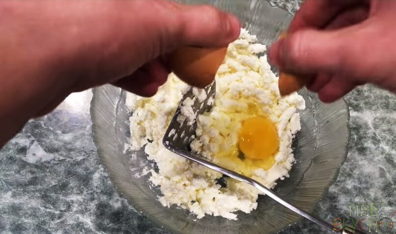 1. Творог выложите в миску и разомните хорошенько вилкой.
