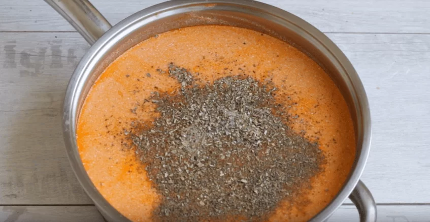 5. Разводим в половине стакана воды муку , хорошо перемешать, чтобы не было комков. Добавить сметану и специи.
