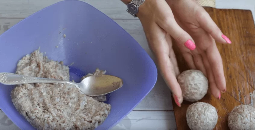 Видео о том, как делать тефтели из фарша и риса с подливкой на сковороде
