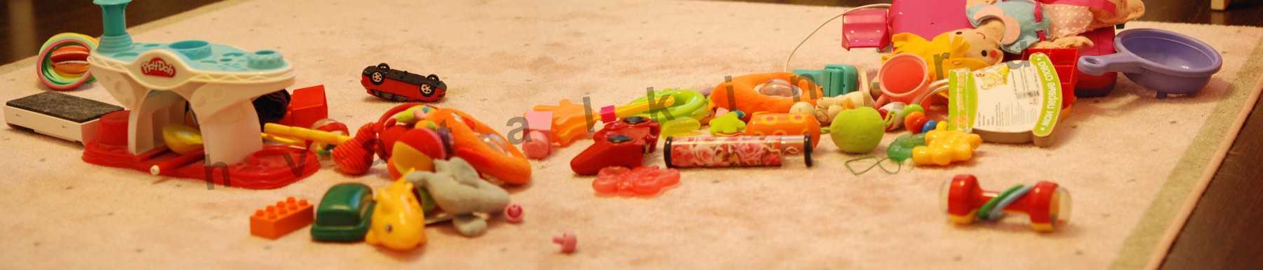 Детские игрушки разбросанные по полу.