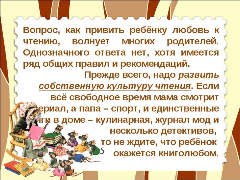 Любовь к книгам формируется не в школе, а в семье. Учитель только обучает ребёнка грамоте – письму и чтению. А родители собственным примером показывают то, насколько увлекательным может быть мир литературы. И начинать нужно ещё с раннего детства, когда формируются многие навыки и полезные привычки.