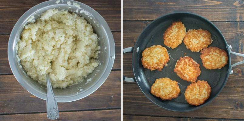5. С двух сторон обжарить картофельные оладьи до готовности.