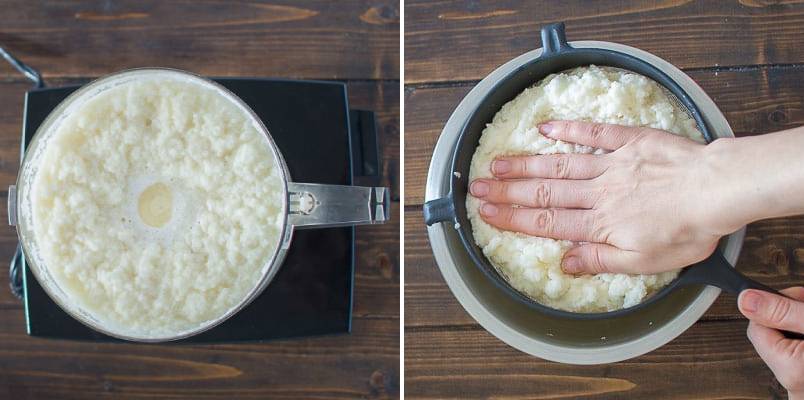 - Может оказаться, что натертая картофельная масса получилась слишком жидкой. В этом случае ее необходимо отжать.