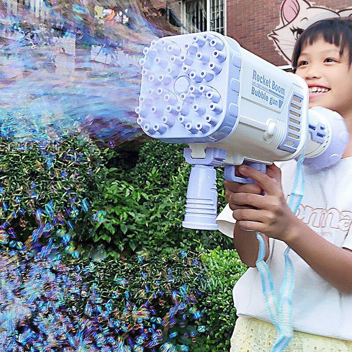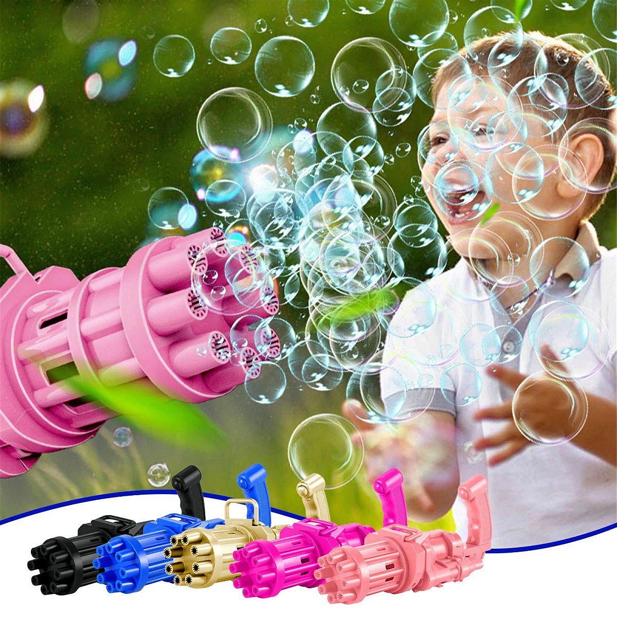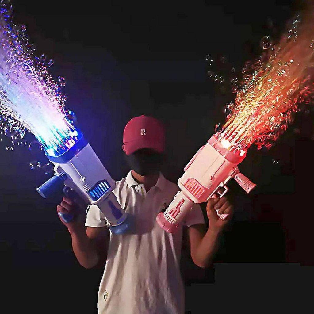 Купите генераторы пузырей в форме пистолетов. Заправьте их раствором. Выдайте каждому ребёнку по прибору и объявите мыльную войну. Детей можно объединять в команды.