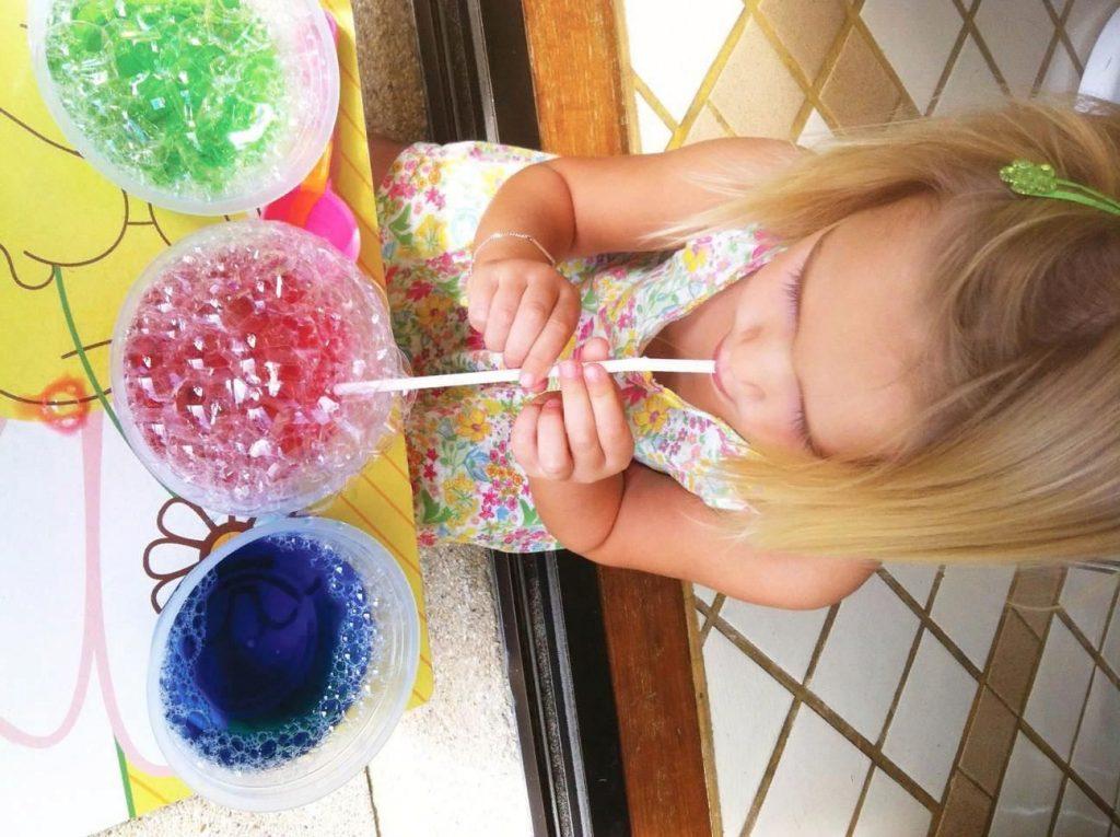 - если у вас совсем маленький ребенок, тогда меньше добавляйте компонент для упругости, так как малыш не сможет надуть мыльный шарик;