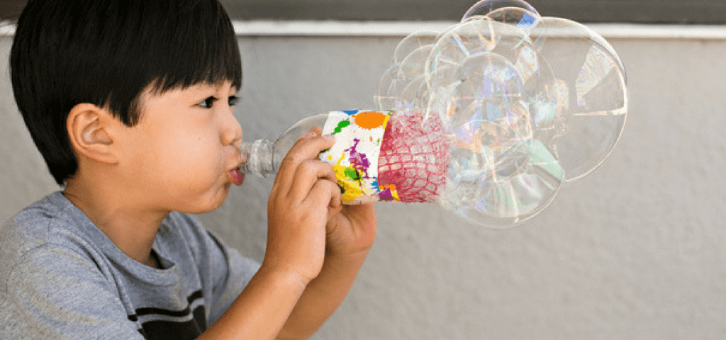 Потрясающие пузыри получаются и с помощью обрезанной пластиковой бутылки.