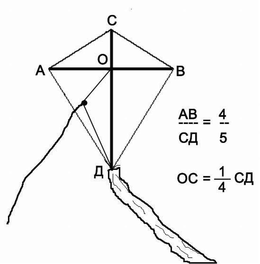 Посмотрите на примерные размеры воздушного змея. С помощью схемы ниже у вас получится пропорциональная игрушка, которая точно не подведет.