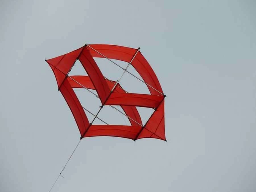 Для самодельного воздушного змея конструкция довольно прочная, но не слишком сложная. Бокс-кайту не нужен хвост — центровка регулируется перемещением точки крепления спасательного жилета по ковру из куска подвесного шнура. По этой причине коробчатый кайт легко транспортировать: При размерах, показанных на фотографии, вы можете поднять, например, цифровую камеру и получить фотографии с высоты птичьего полета при включенном переключателе непрерывной съемки.