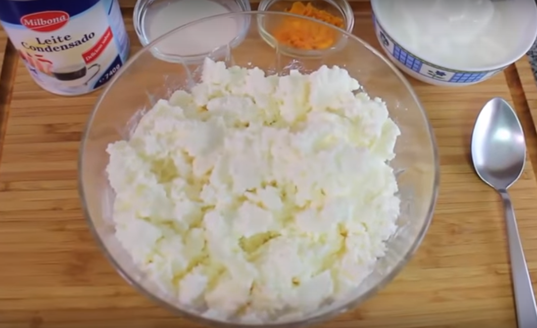 - Для начала необходимо перетереть творог через сито, чтобы сделать его однородным. Также для этого можете воспользоваться погружным блендером. Если творог мягкий, его можно размять вилкой.