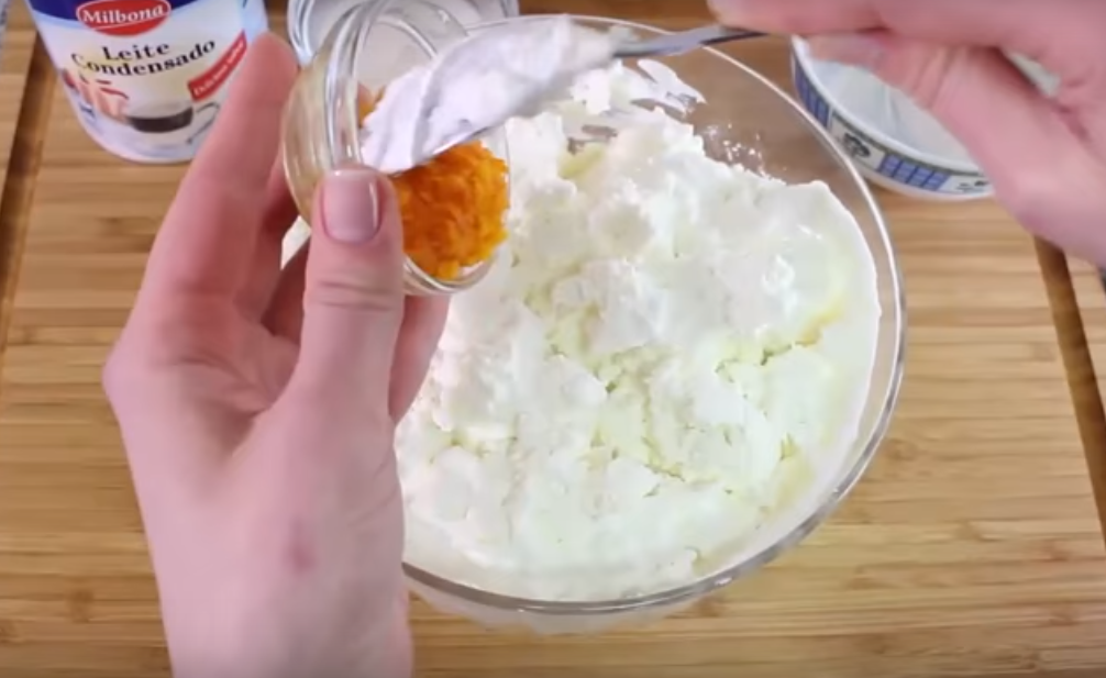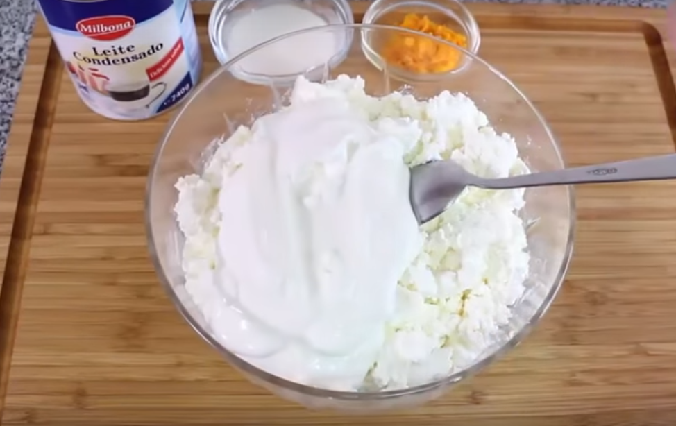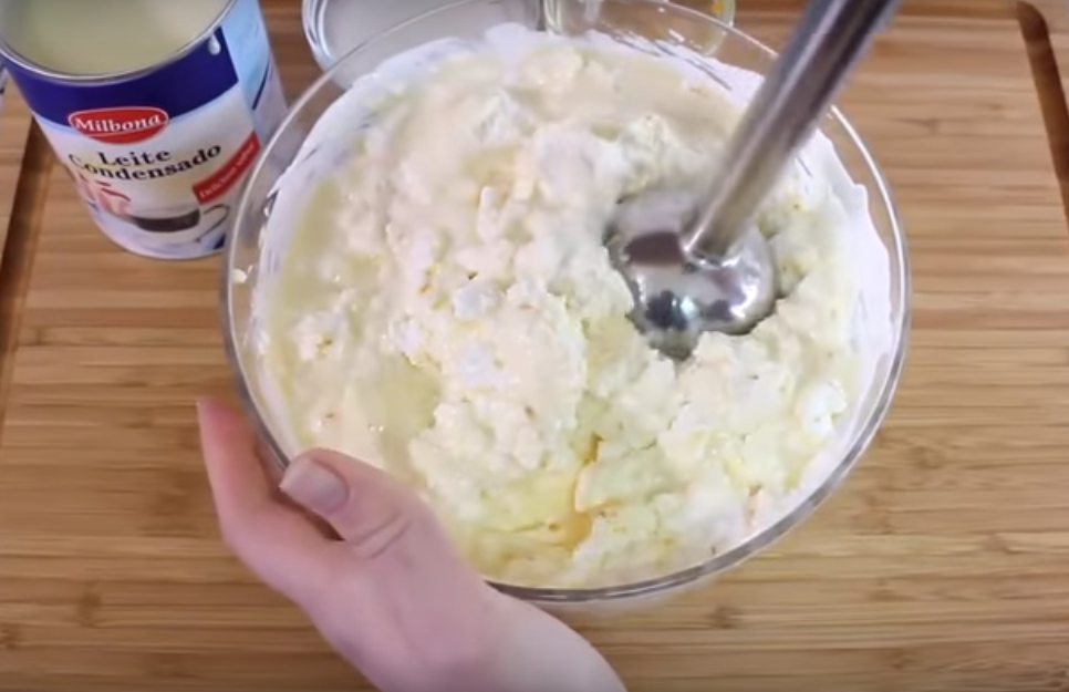 - Творог перекладываем в глубокую миску и перебиваем погружным блендером в течение двух минут. Или можете пропустить его через сито.