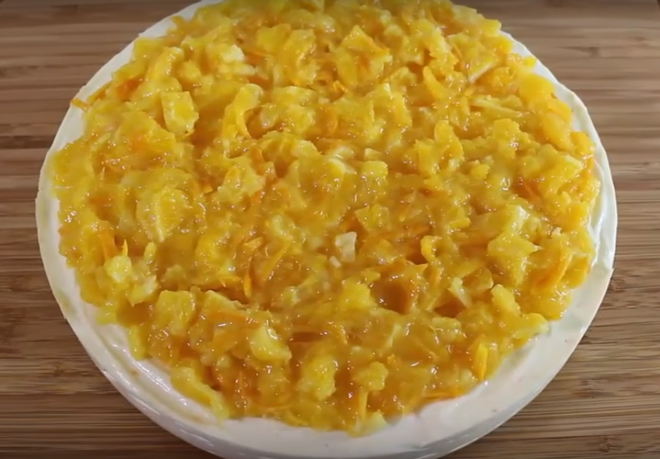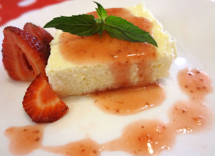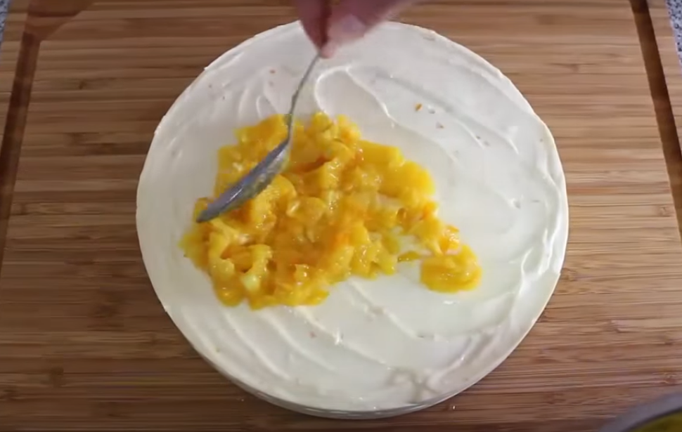 5. Когда запеканка готова даём ей остыть полностью, после этого снимаем форму. Затем используем клубничный, вишнёвый или любой другой джем, который вам нравиться, лучше если он будет с кислинкой, смазываем верхнюю часть тонким слоем. Это скроет трещины, которые образуются на поверхности при выпекании и улучшит общий вкус блюда.