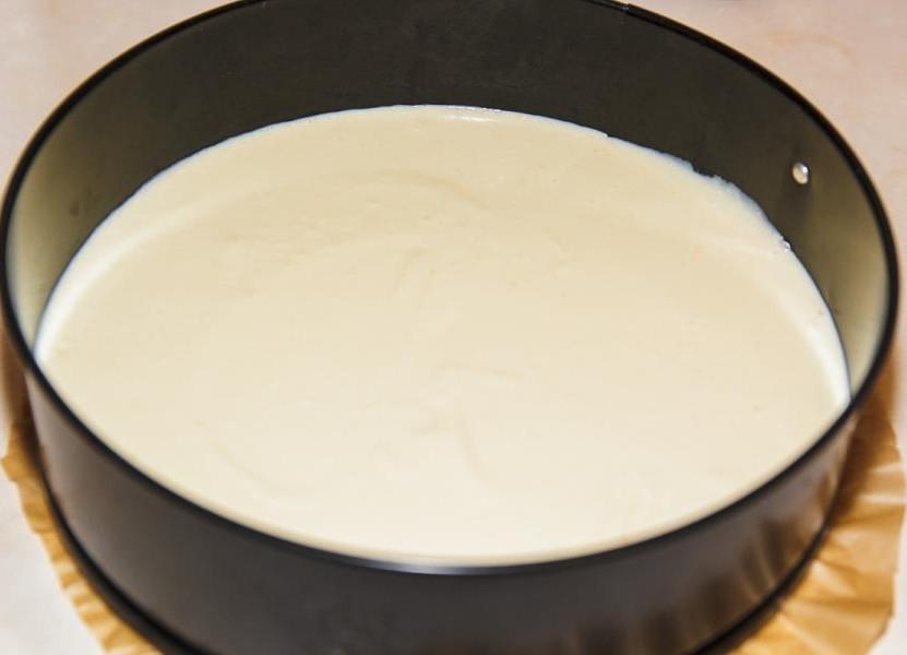 - После этого равномерно распределите творожное тесто по подготовленной емкости, которую можно промазать маслом. Она обязательно должна быть стеклянной (термостойкой) или силиконовой, желательно круглой формы. Если возьмете квадратную или прямоугольную, тесто может подсохнуть по краям, а в центральной части остаться сыроватым.