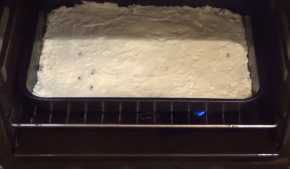 - Равномерно распределите смесь по всей поверхности формы для запекания и поставьте ее в духовку. Готовьте при температуре 180 °C примерно 40 минут до готовности;