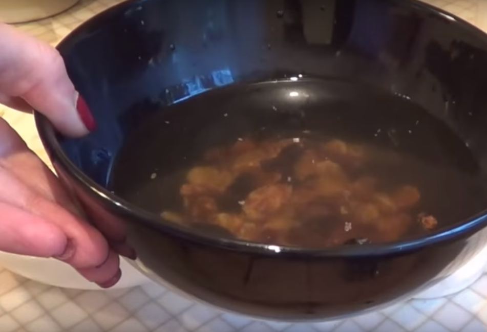 - В самом начале промываем изюм и заливаем его на несколько минут кипятком.