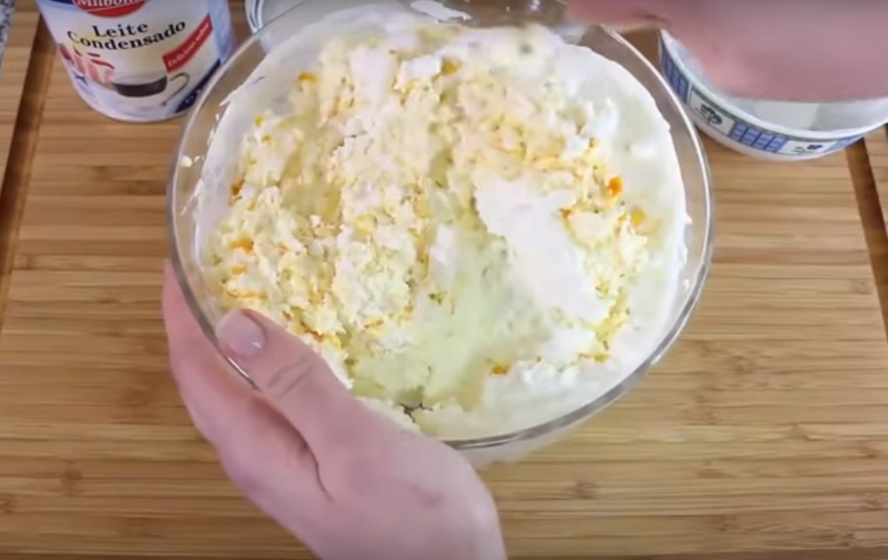 - После этого отделите желтки от белков и отправьте их в полученную массу. Белки нужно поместить в другую чистую, полностью сухую миску и взбить до появления густой пышной пены.