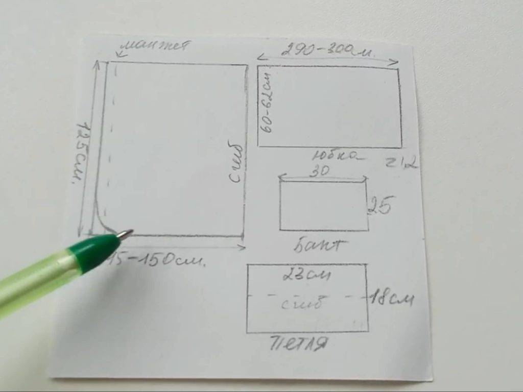 - Выкройка деталей. Ткань, имеющую ширину 150 см, складывают пополам, получая квадрат. От линии сгиба в нескольких точках ставят метки на расстоянии 150-200 см, затем их соединяют с помощью линейки, вырезают заготовку. Если есть желание, края полотна с нижней стороны закругляют.