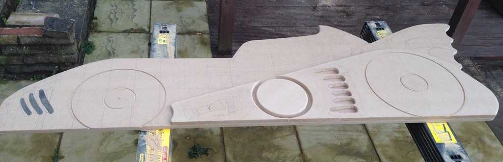 Сверяясь с имеющимся листком, переносите все линии с бумаги на фанеру. Сначала линии тонкие, после того как все более-менее прорисуете, можно очертить результирующие контуры жирной линией — вырезать будет проще. Хоть детали нужны в двойном экземпляре прорисовывать вторую нет смысла: вырезав первую, ее обведем и получим вторую.