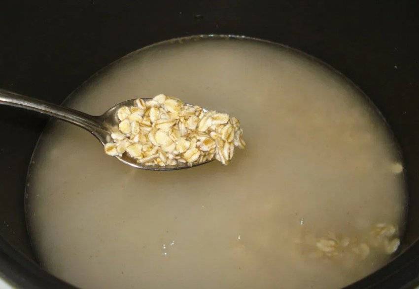 - вскипятив 150 мл воды, высыпаем в нее 1 столовую ложку геркулесовых хлопьев;