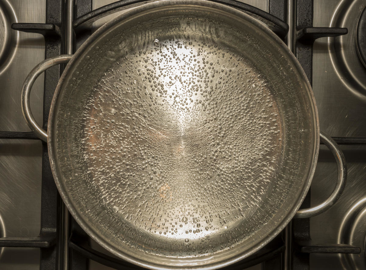 2. В кастрюлю наливают воду и устанавливают на плиту.
