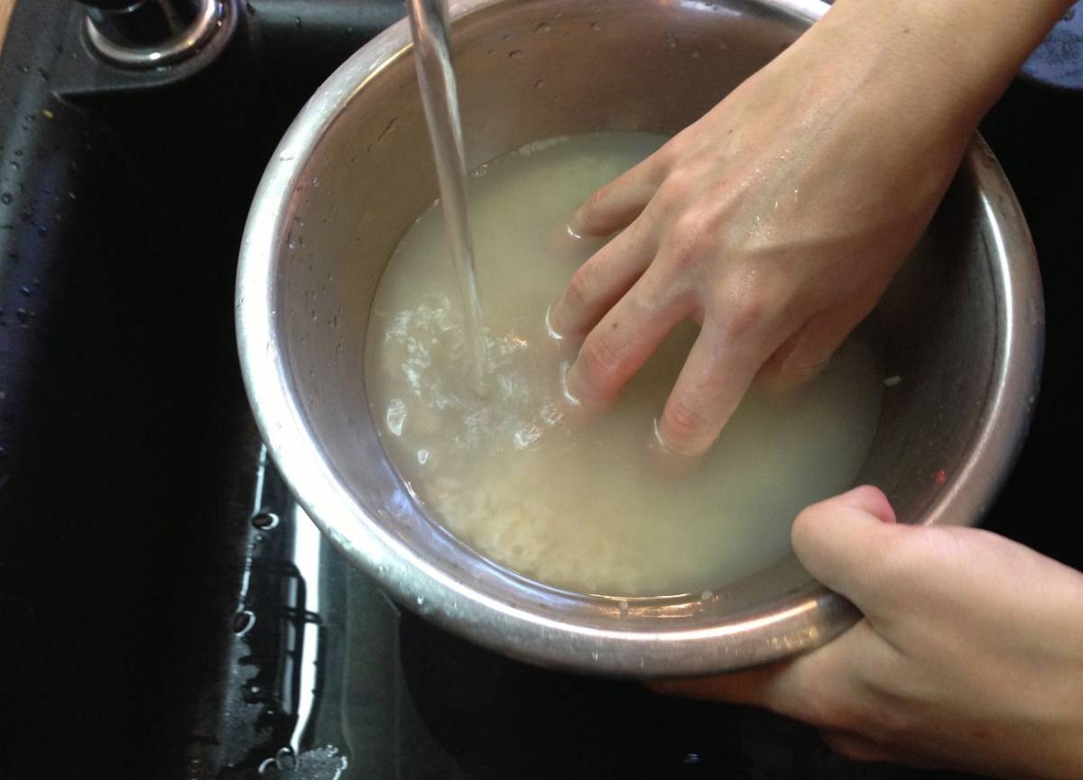 - Рис промыть несколько раз до чистой воды, в зависимости от типа и качества зерна может понадобиться до 5-8 циклов.