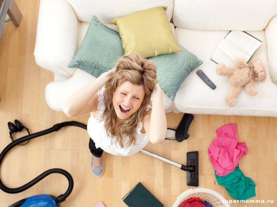 Важно распределить обязанности по уходу за домом и ребенком на всех членов семьи. Один помогает готовить кушать, другой следит за малышом, третий (если таковой имеется) убирает с пола и диванов лишние вещи