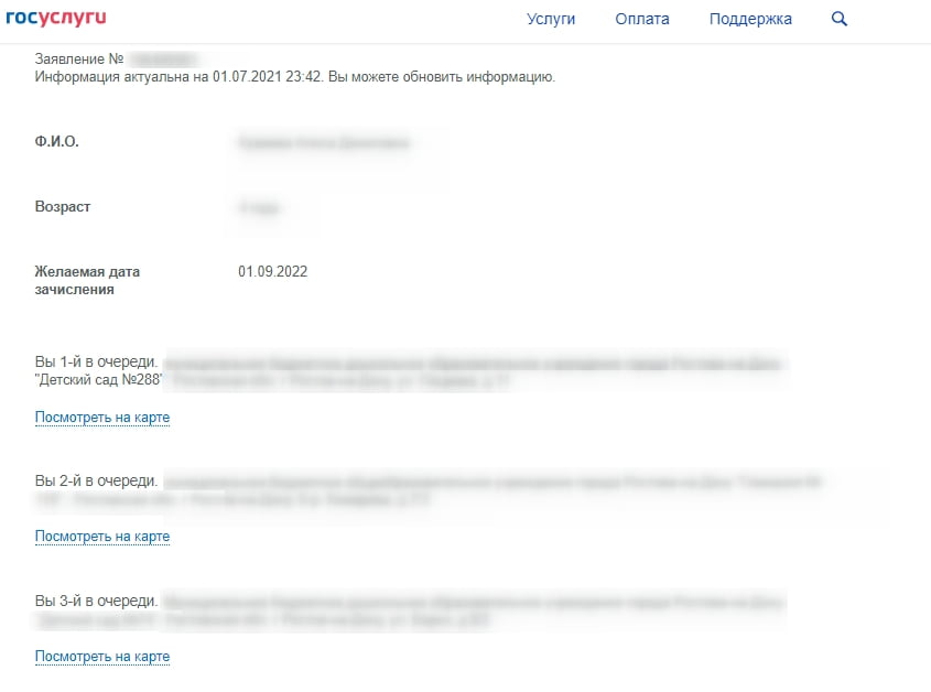 Как только запрос на очередь в детсад будет отправлен, родители могут отслеживать продвижение очереди в онлайн-режиме.