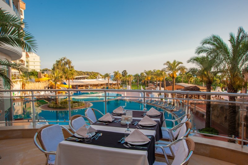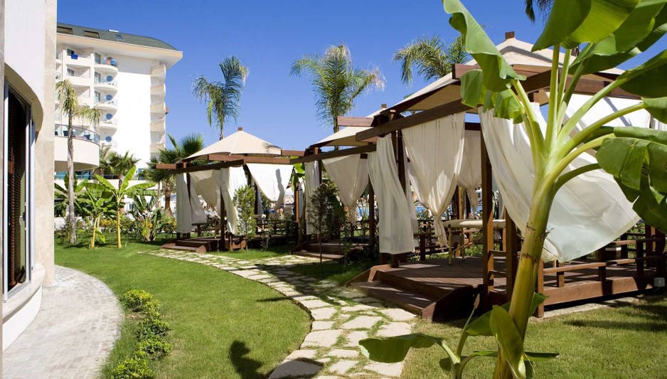 Один из самых зеленых и спокойных отелей Алании спрятался на берегу Средиземного моря в поселке Окурджалар. На территории несколько бассейнов и водных горок. Если захочется пощекотать нервы по-настоящему, в 10-15 минутах ходьбы от отеля находится аквапарк Water Planet.