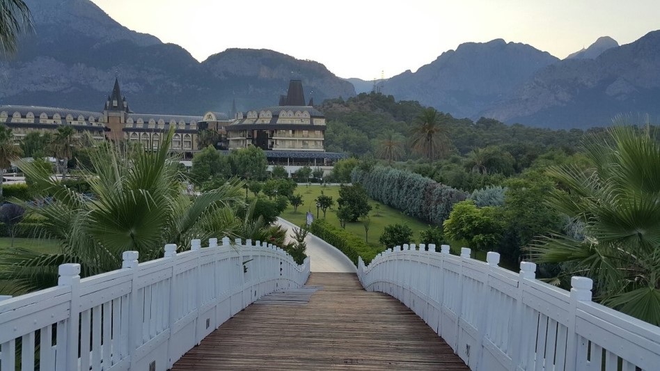 Приехав в Amara Prestige Elite, как будто попадаешь в небольшой Диснейленд. Здание отеля похоже на дворец, в центре высятся горки аквапарка, а вся территория утопает в зелени и пальмах. На горизонте видны величественные горы в пушистых облаках, со стороны побережья тянет легким бризом и чувствуются ароматы моря. Сразу настраивает на отдых!