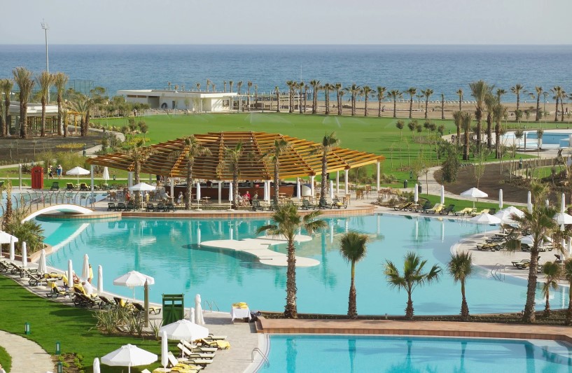 Первое, что бросается в глаза при заезде в этот очаровательный отель — главный бассейн. Он действительно огромный! И это без учета дополнительных бассейнов, которые разбросаны по всей территории.