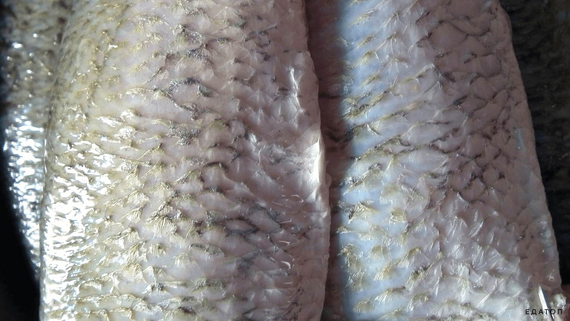 Чешуя мороженой рыбы должна плотно прилегать к коже и не иметь пятен и следов ушибов. Кожа бесчешуйчатых рыб – гладкая. После оттаивания – мясо плотное, не отстает от костей, нет неприятного запаха, и он не обнаруживается при варке пробных кусков. Оттаявшая и вновь замороженная рыба обычно становится темной и тусклой.