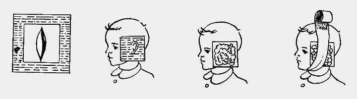 - В полученном кусочке ткани необходимо сделать отверстие, в которое бы проходили уши больного.