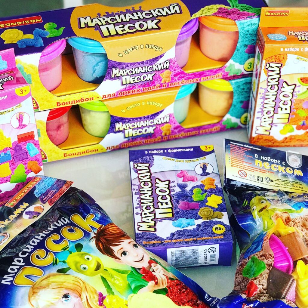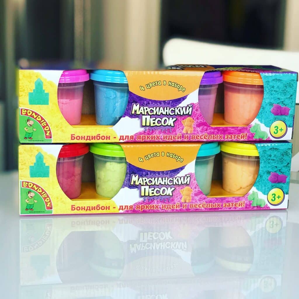 Китайская торговая марка Bondibon предлагает Марсианский песок. Товар, протестированный на безопасность и сертифицированный Госстандартом, продается в плотной упаковке. Инструкция напечатана на русском языке.