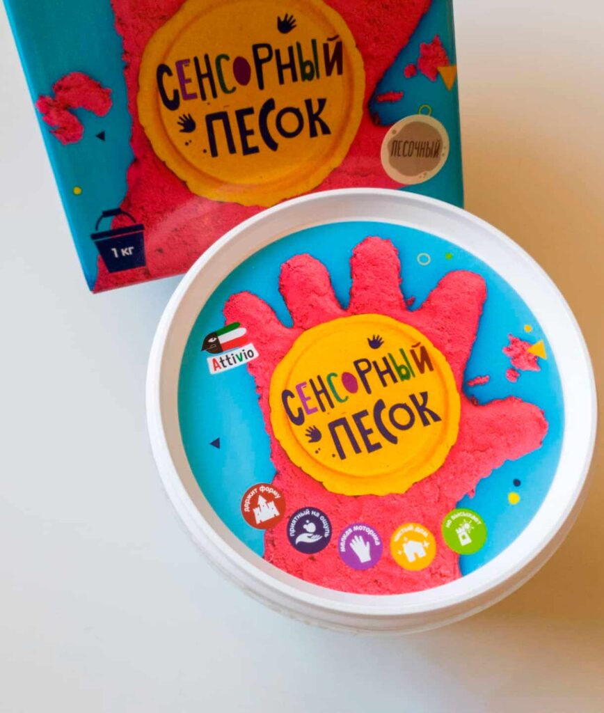 Российский бренд Attivio предлагает оригинальную новинку — сенсорный песок. Материал для лепки изготовлен по стандартному рецепту — из кварцевого песка и полимера. В разноцветные наборы добавлены пищевые красители и ароматизаторы.