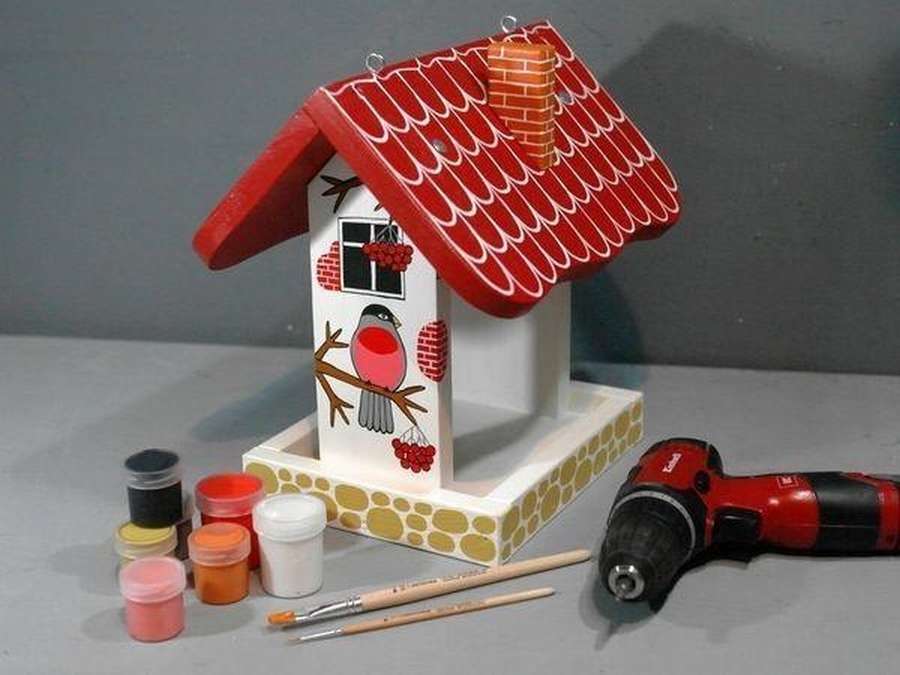 - Окрашивание. Последним этапом является окрашивание кормушки на основе воды. Для этого нужно использовать кисть и краску в соответствии с выбранным дизайном.