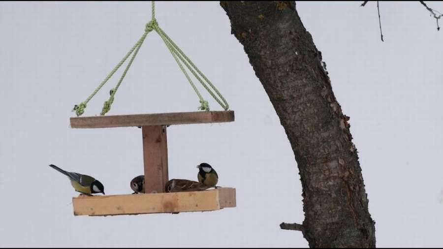 Простая кормушка для птиц принесет пернатым огромную пользу