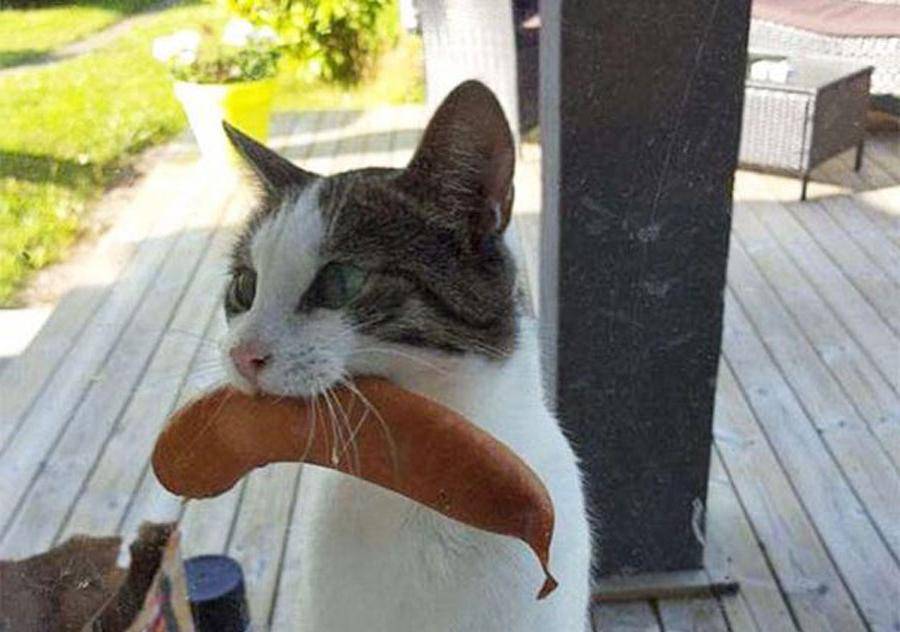 Если ваш кот принесет вам перекусить, он может выбрать что-то намного хуже, чем хот-дог. Этот проказник терпеливо ждет у двери, чтобы принести в дом свою добычу. Мы не совсем уверены, что данный хот-дог можно кушать людям.