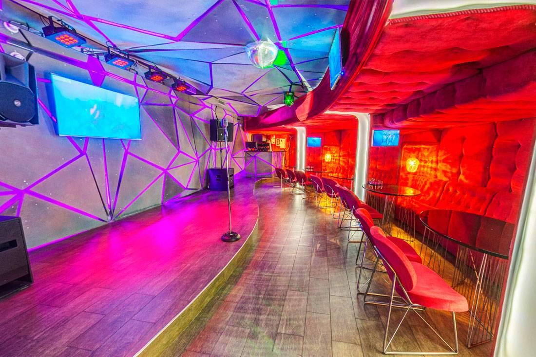 К услугам гостей – более 50 тысяч хитов зарубежных и отечественных исполнителей, отличный звук, широкий ассортимент закусок и большой выбор напитков в баре.