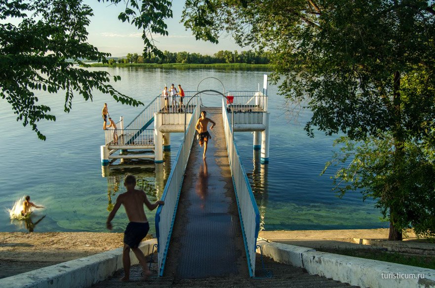 Городской причал “Лазурный”, от которого отходит прогулочный теплоход, на нем мы обязательно прокатимся чуть позже. Этот же причал служит отличным трамплином для местной детворы.
