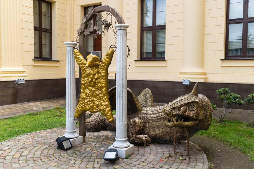 Воплощение мифологического сюжета отсылает зрителей к легенде о бесстрашном Ясоне. По замыслу шкура барана и стерегущий ее дракон, установленные в 2008 году у здания Художественного музея, должны были аллегорически означать грядущую Олимпиаду.