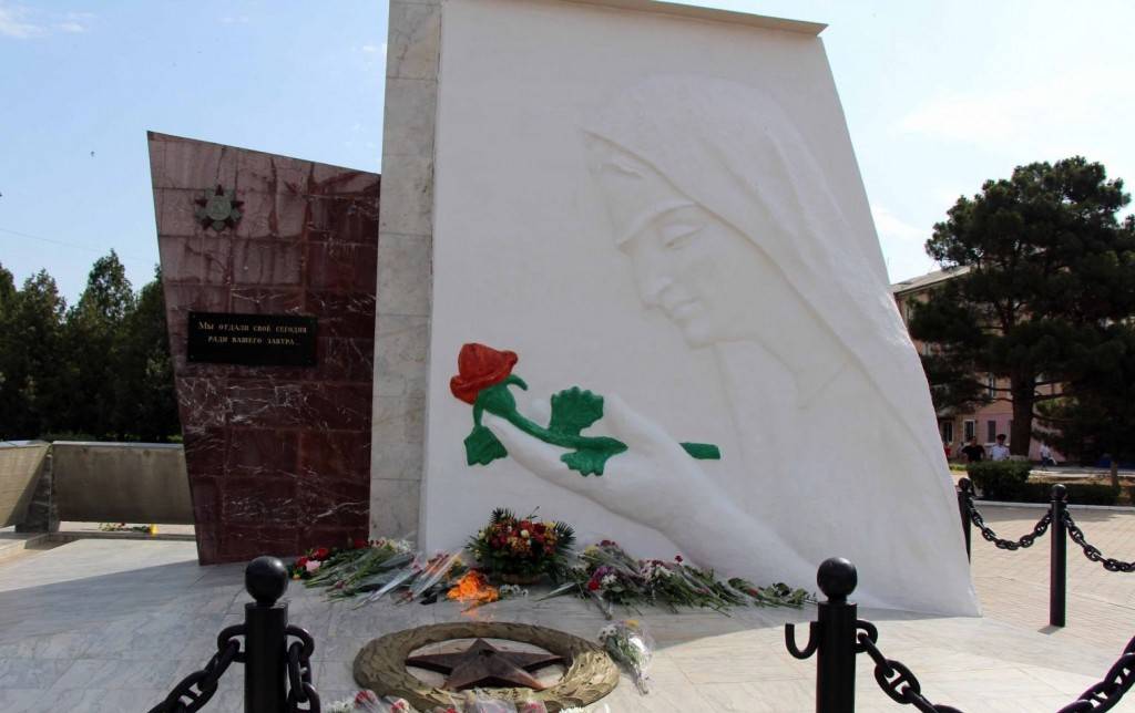 В Каспийске немного памятников. Но этот известен всем местным жителям. На стеле изображена женщина с опущенной головой, которая оплакивает погибших солдат времён Великой Отечественной войны.